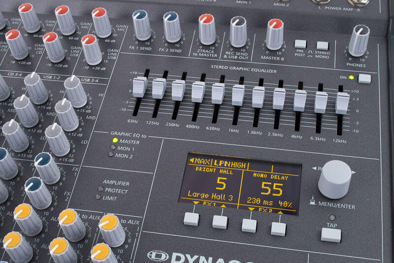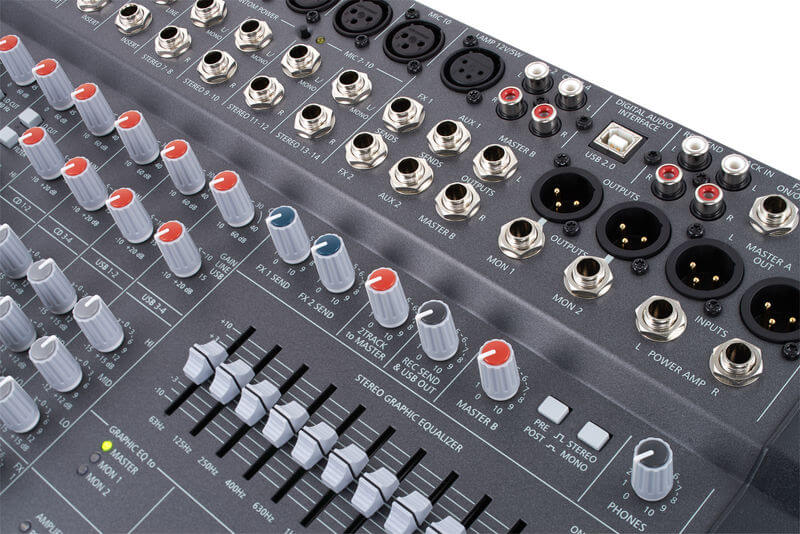 Phần mix bắt đầu với 10 đầu vào có độ nhiễu thấp nhất, tiền khuếch đại micro rời. 6 bus phụ, một trong số chúng có thể chuyển đổi fader trước / sau, cho phép linh hoạt cao để điều chỉnh loa monitor. Hai bộ xử lý hiệu ứng cung cấp 100 cài đặt trước, bao gồm các hồi âm PowerMate đã trở thành huyền thoại. Hơn nữa, mỗi cài đặt trước có thể được chỉnh sửa và lưu trữ thành 20 bộ nhớ người dùng.